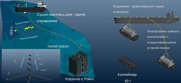 Компания Т-РОЙ | Добыча полезных ископаемых ДОБЫЧА ПОЛЕЗНЫХ ИСКОПАЕМЫХ Экологичный доступ к стратегическим металлам Мирового океана Железомарганцевые конкреции — природные «капсулы» с высоким содержанием никеля, кобальта, марганца и редкоземельных металлов. Их залежи на глубинах 4000–5000 метров способны обеспечить «зелёный переход» планеты на десятилетия вперёд. Мы предлагаем принципиально иной способ добычи — без разрушения дна и массового уничтожения экосистем. Технология «Рой»: 512 автономных роботов-сборщиков одновременно работают на участке; каждый робот с помощью компьютерного зрения отличает конкрецию от живого организма; селективный сбор: извлекается только руда, 40% конкреций остаётся для сохранения биоценоза; отсутствие «плюма» — взвеси ила, которая губит планктон и нарушает фотосинтез; производительность: до 300 000 тонн в год с одного роя. Преимущества: импортонезависимость (все компоненты — российские); отсутствие единой точки отказа (поломка 5–10 роботов не останавливает процесс); масштабирование за счёт добавления новых роев; cсоответствие стандартам Международного органа по морскому дну (МОМД). Роботы сборщики доставляются на дно в специальном контейнере, вместимость которого 512 штук. После того, как группа роботов-разведчиков размечает границы участка сбора добычи, роботы сборщики приступают к сбору конкреций. Работа роботов, входящих в рой полностью автономна. После заполнения индивидуального сборочного отсека роботы сборщики самостоятельно отправляются к сборочным контейнерам для перегрузки добытых конкреций и опять возвращаются к добыче. Если у робота заканчивается заряд аккумуляторной батареи, он в автоматическом режиме отправляется на подзарядку к центральному контейнеру. Оператору остается следить за наполняемостью контейнера добычи или реагировать на аварийные сигналы дронов. При выходе робота из строя он либо самостоятельно поднимается на поверхность воды, либо транспортируется служебными роботами в контейнер для подъема на судно. Роботы передвигаются в толще воды при помощи плавников, изгибающихся подобно плавникам "Каракатицы", что позволяет не нарушать поверхность грунта и не поднимать облака взвеси, которые могут губительно сказаться на местный флоре и фауне. В настоящий момент создан и испытан полнофункциональный прототип подводного робота. Видео с испытаний можно посмотреть на Rutube.